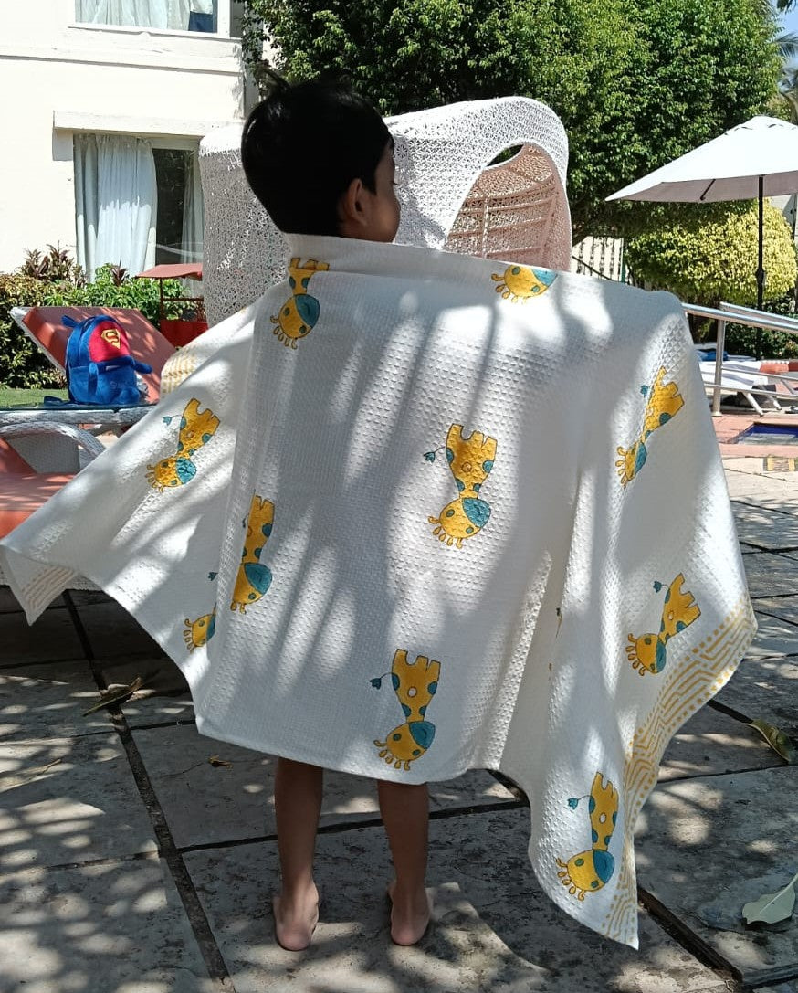 Make bath time fun with our Hand Block Printed Cotton Bath Towel. Made from soft, 100% cotton, it’s gentle on your child’s skin and super absorbent. The playful hand-printed designs bring joy to every drying-off moment